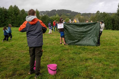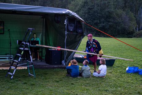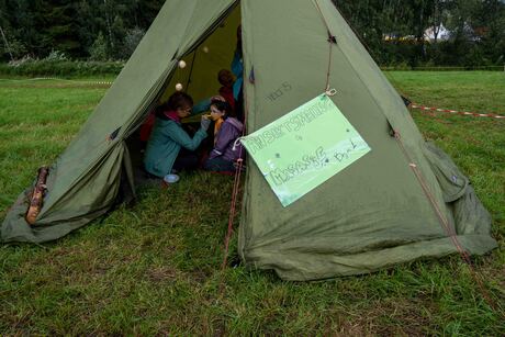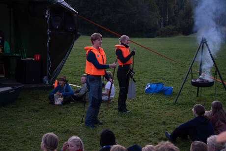 I dag var det besøksdag for familie på leiren. Dagen begynte med globalløp til inntekt for speiderarbeid i Zambia, Tanzania og Sri Lanka. Speiderne kunne bli sponsa per runde de løp, eller med en fast sum. I tillegg var det konkurranse for beste kostyme, og mest kreative måte å løpe på. Anna og Hedda fra Nordberg var bundet sammen og hadde på seg matchende badedrakt. Jakob og Odin fra Ris krabbet alle rundene. Vi samlet inn nærmere 80 000 kr.